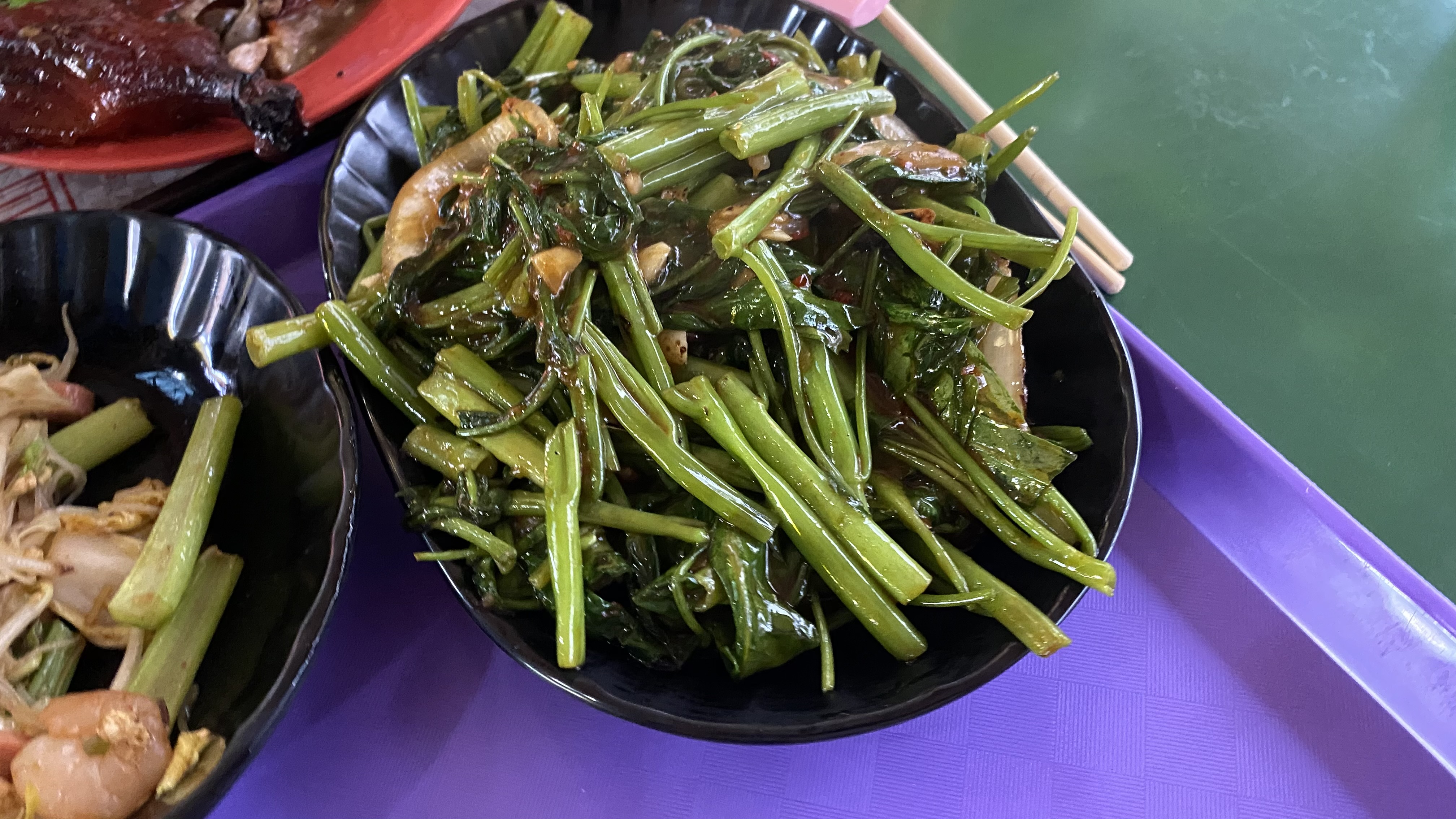 볶음면은 가볍게, 공심채는 느끼함 잡아주는 조합.