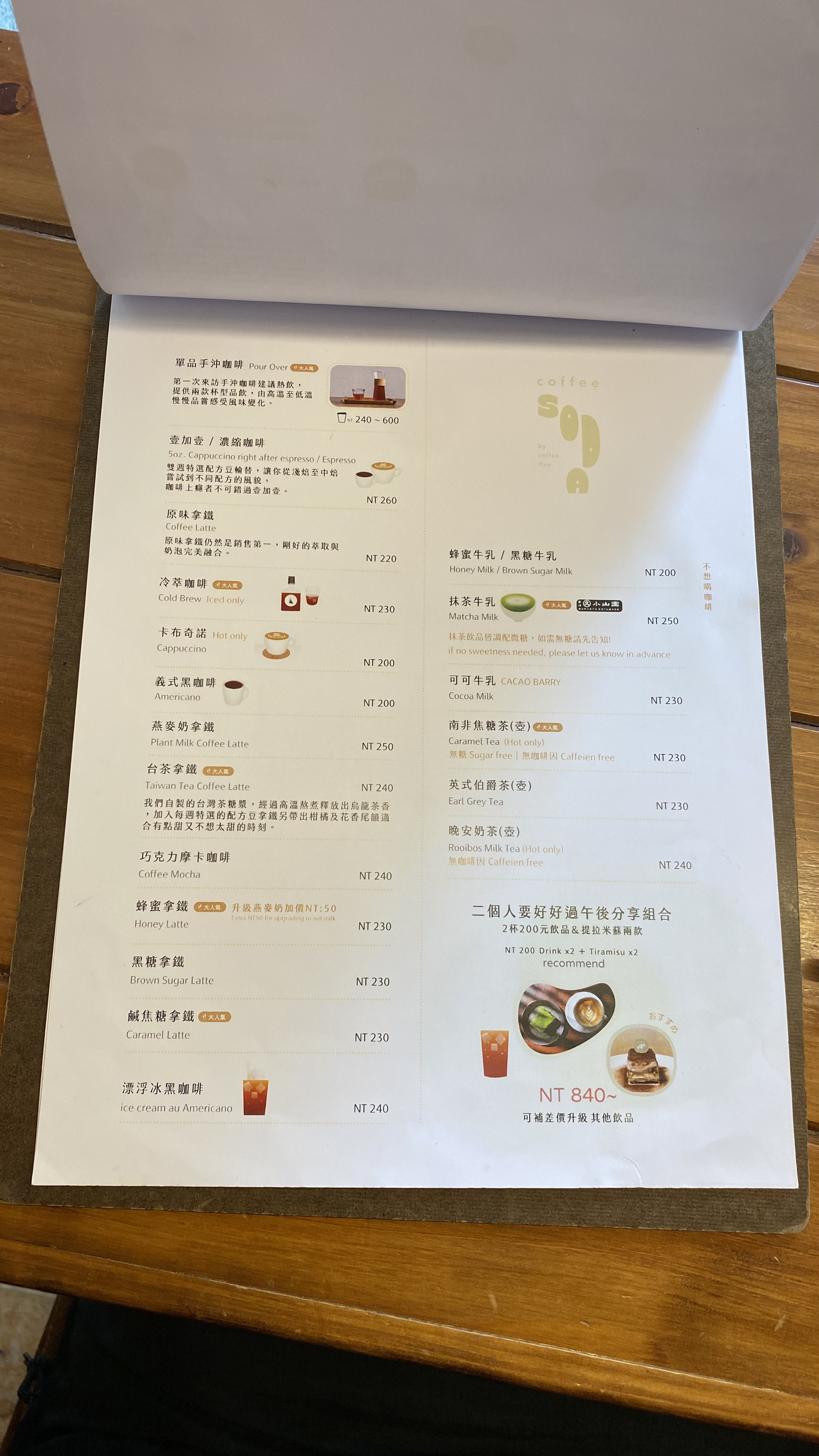 | 대만 밀크 티 라떼 (Taiwan Tea Coffee Latte) | 240 | 약 10,320원 | 대만 특유의 밀크티와 커피 조화 |