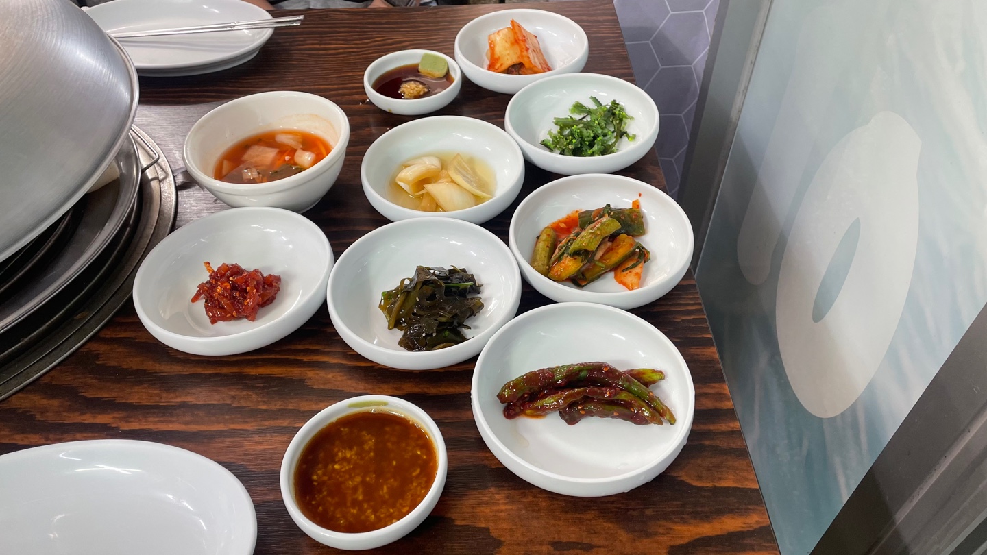 - 생선구이를 주문하면 함께 나오는 밑반찬들이 거의 한 상 가득하다.