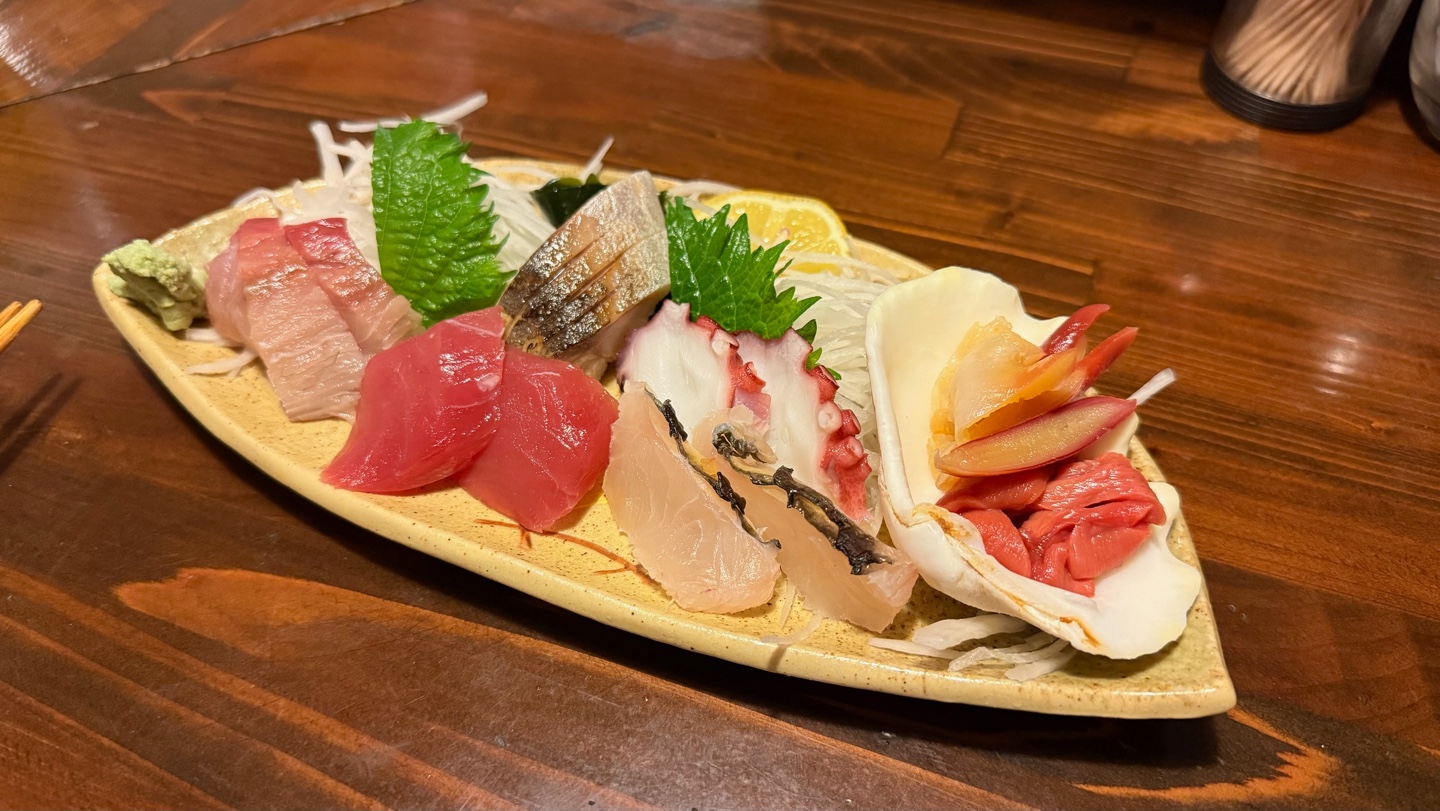 사시미 모둠 (刺身盛り合わせ) | 참치, 방어, 도미, 고등어, 문어, 조개류 | 1,100~2,200 | 약 9,900~19,800원 | 현지 시장에서 매일 신선하게 공수한 사시미 |