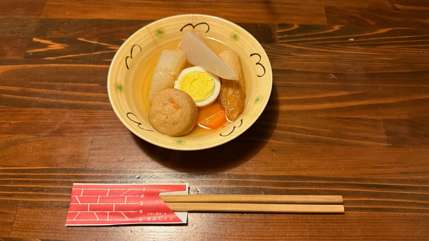 자리세 + 오뎅탕 (おでん) | 따뜻한 오뎅탕 (자릿세 포함) | 300 | 약 2,700원 | 자리세를 내면 나오는 깊은 국물의 오뎅탕. 시원하고 깔끔한 맛이 일품 |