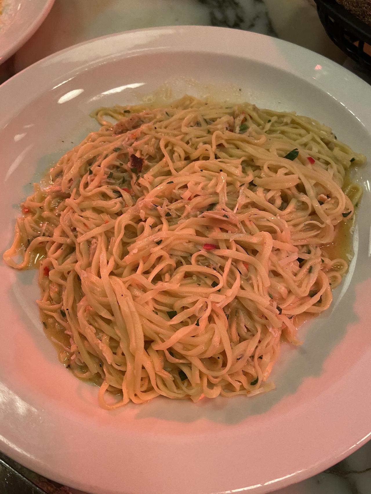 파파르델레 면이 두툼하고 쫄깃해 소스와 완벽한 조화를 이룹니다. - Tagliarini with Dorset crab, chilli & lemon: 신선한 도싯 크랩과 칠리,