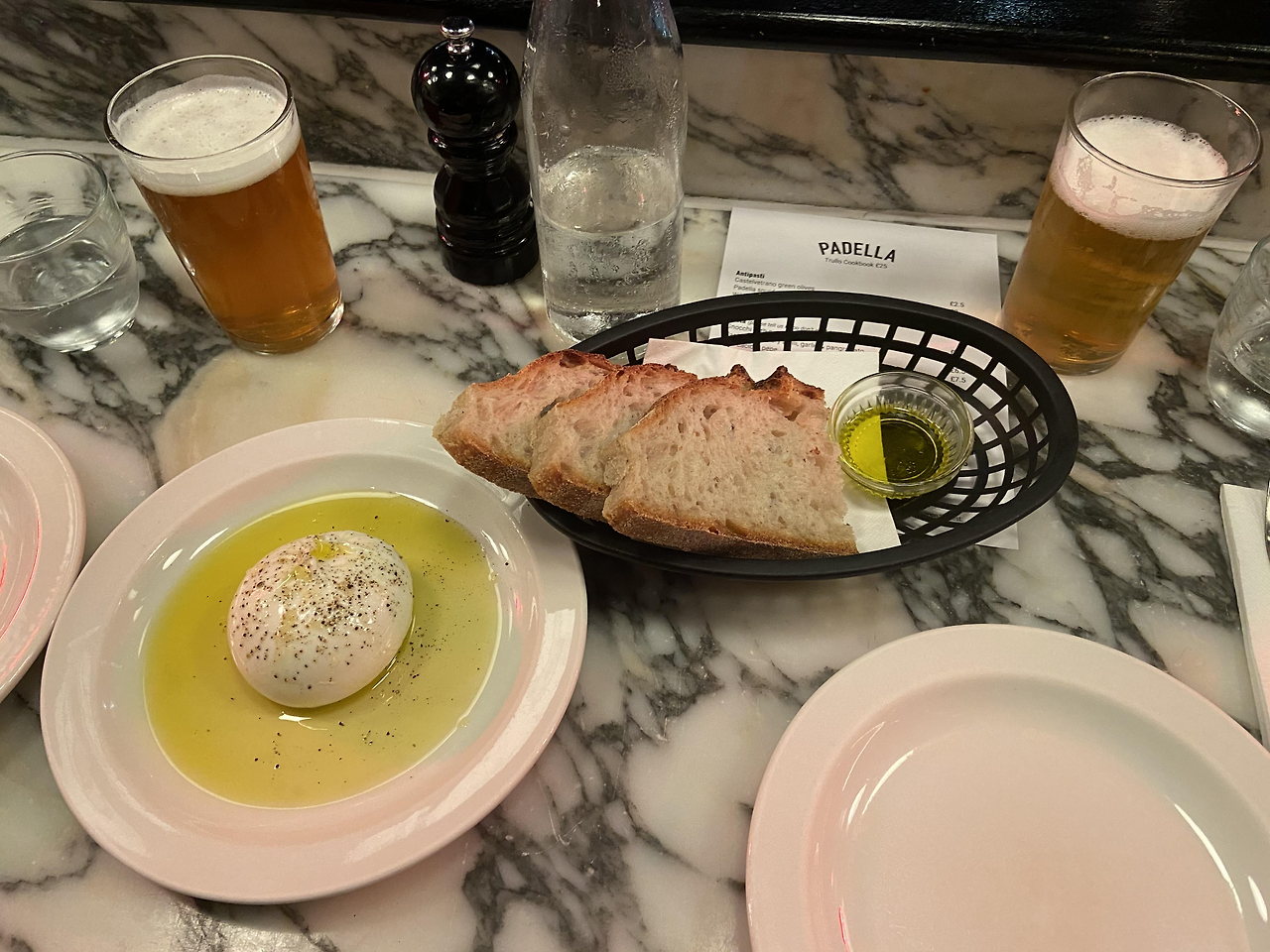 레몬이 어우러져 상큼하고 매콤한 맛을 자아냅니다. - Burrata with Le Ferre olive oil: 부드러운 부라타 치즈에 향긋한 Le Ferre