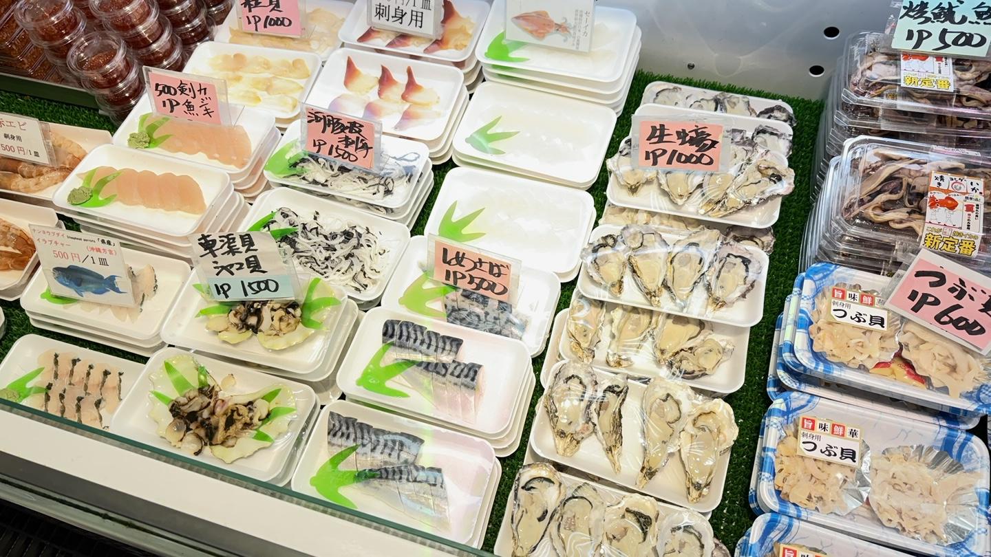 즉석에서 갓 썰어낸 사시미, 해산물 덮밥(카이센동), 튀김, 조림요리까지 즐길 수 있죠.
